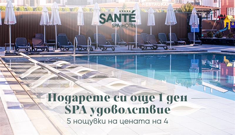 Цената по пакетното предложение включва: нощувка със закуска и вечеря, СПА център с голям минерален басейн с детска секция 34°C, акватоничен 38°C и контрастни басейни 44°C и 16°C, джакузи 38°C, външно топило 39°C сезонен външен басейн 30°C, солна стая, термална зона с финландска суха сауна, билкова сауна, инфраред сауна до 50°, парна баня, релакс зона/, фитнес, паркинг.