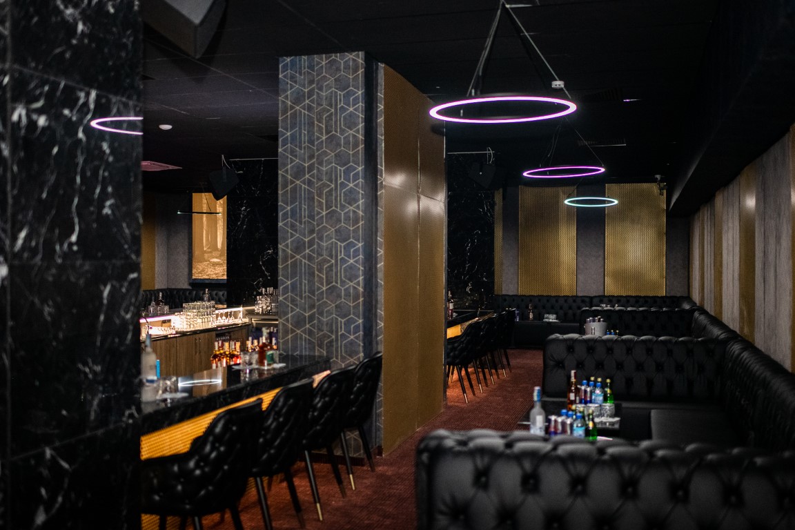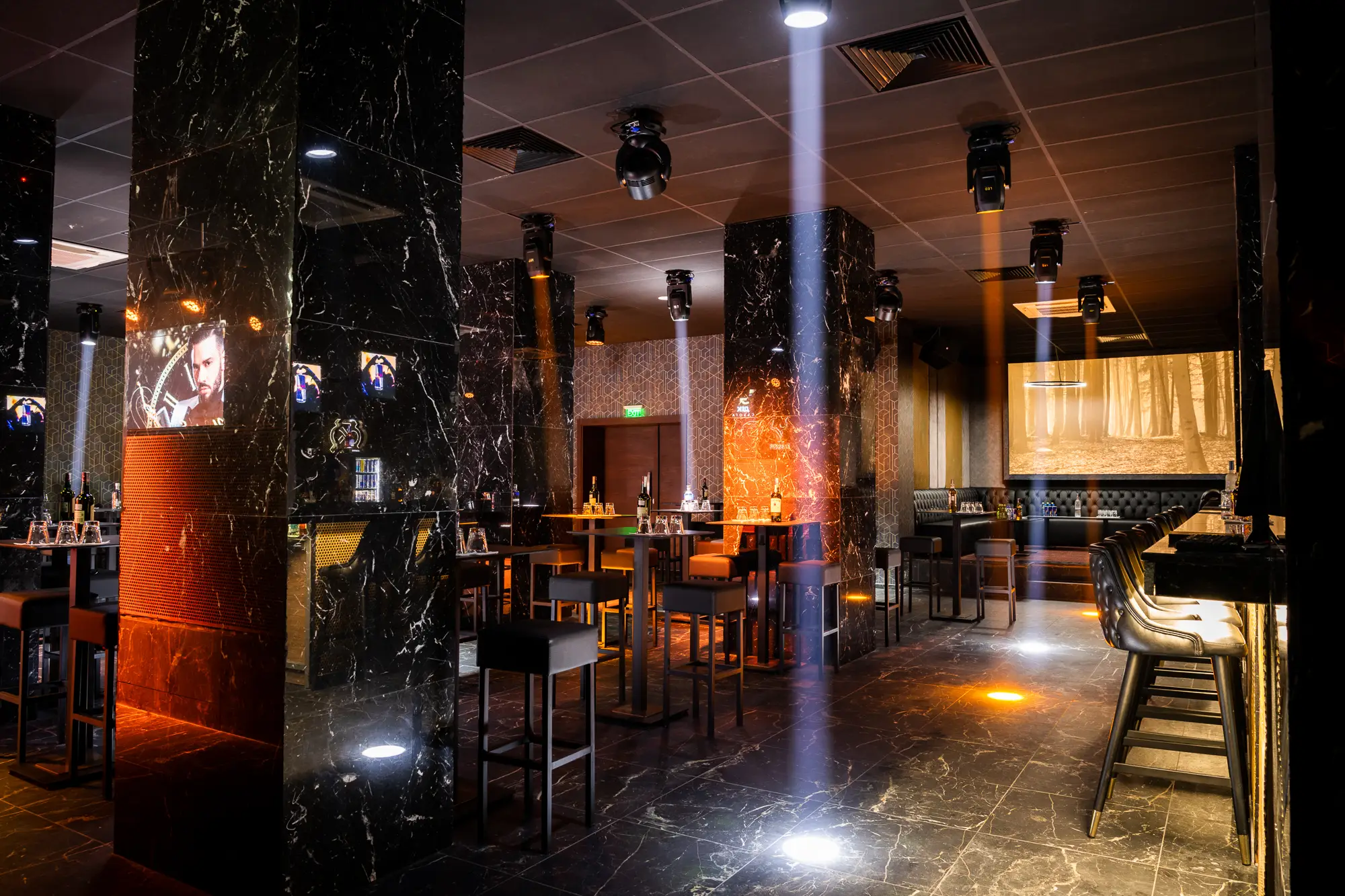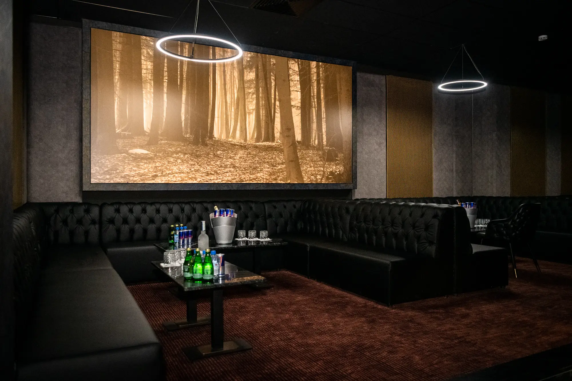 Комфортна и луксозна зона със стилна атмосфера за любителите на уиски или по-малки екипи, които търсят място за градивна дискусия или тихи игри. Залата разполага с мека мебел и два 65" LED TV, на които може да се стриймва свободно медия.