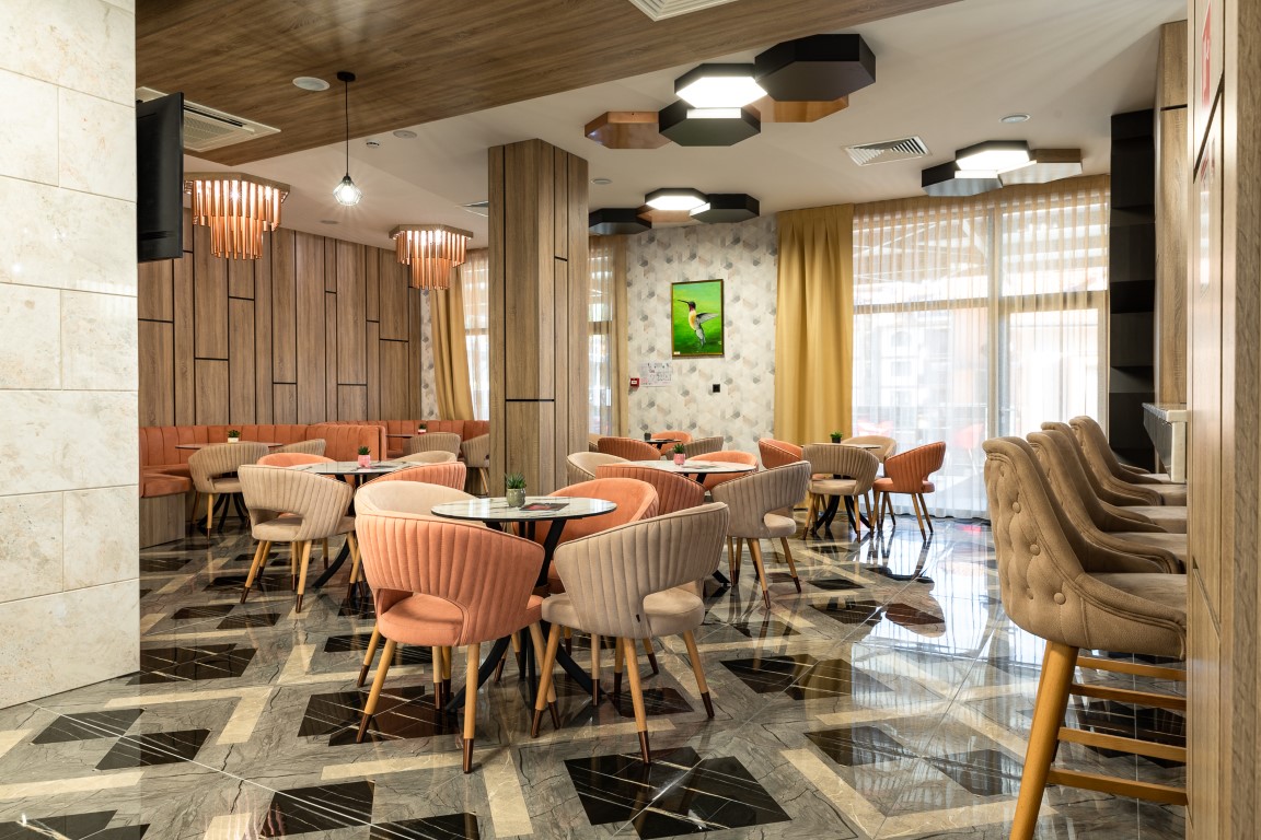 Просторен Лоби бар, даващ близост до детския кът и топлината на камина в уютна и елегантна атмосфера. Споделете времето си с любим коктейл, любимита настолна игра или спортно предаване.