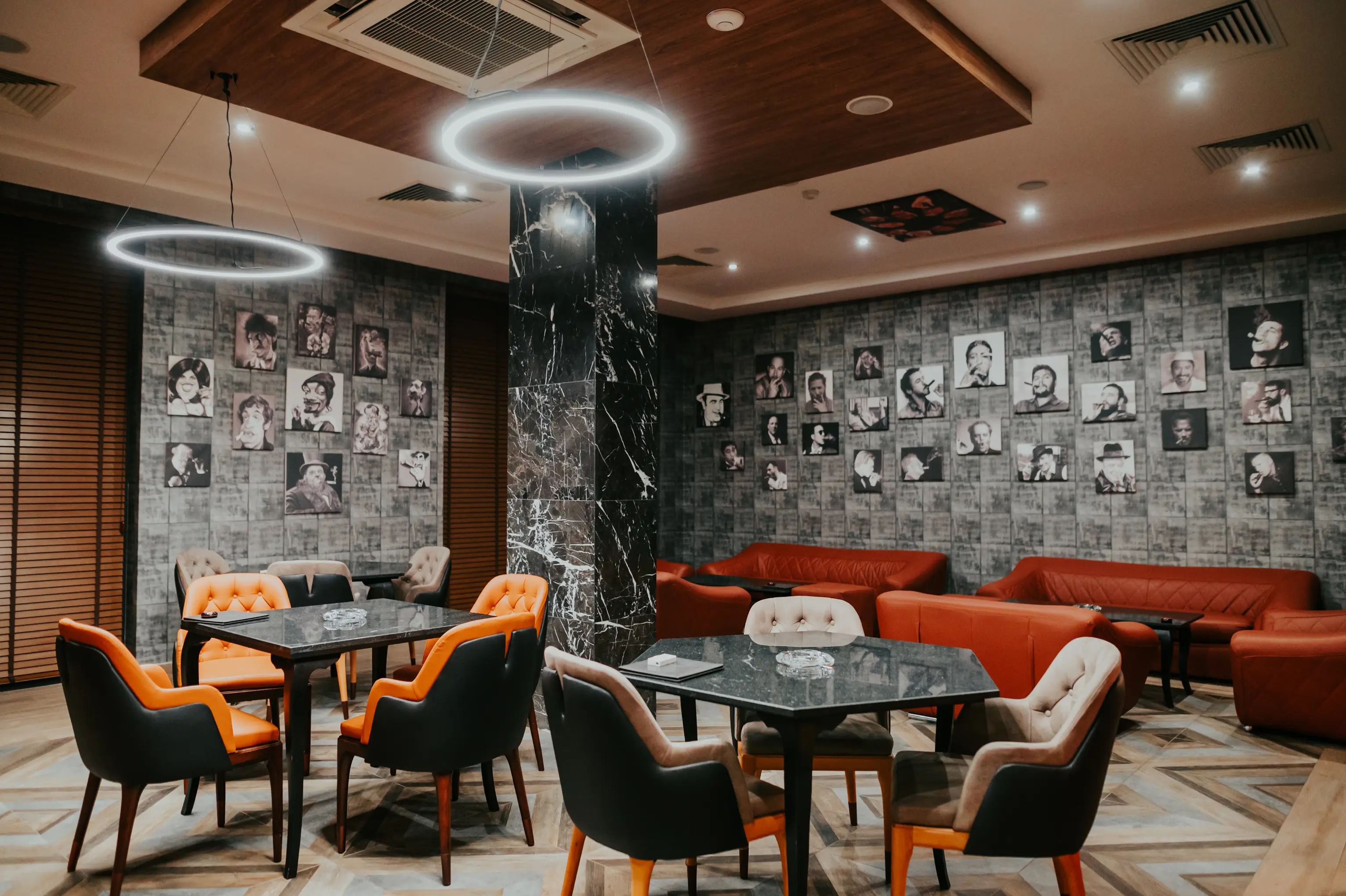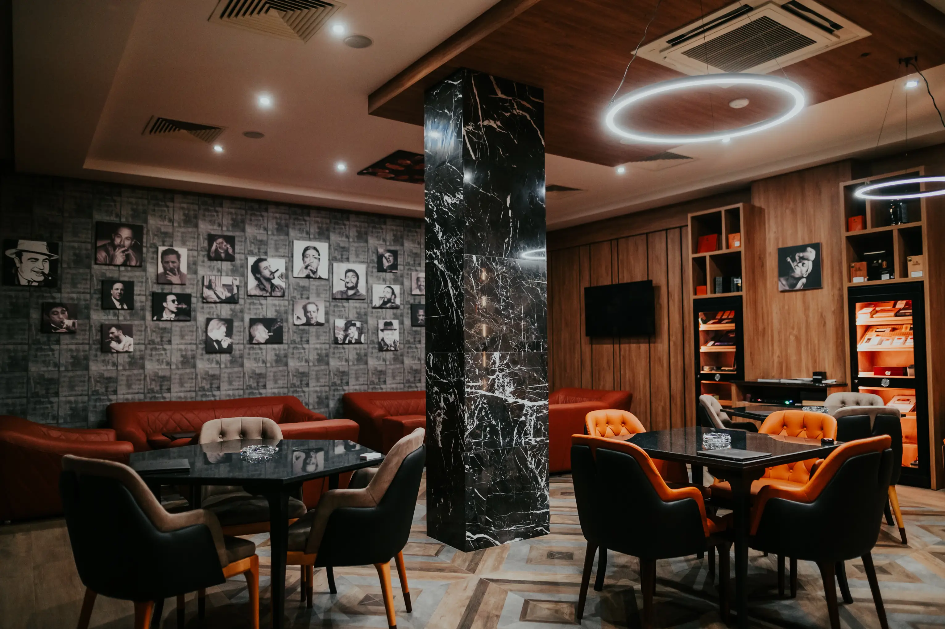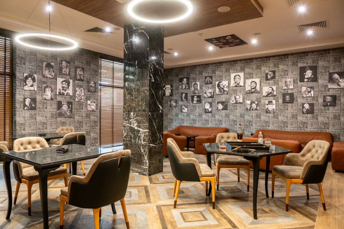 Комфортна и луксозна зона със стилна атмосфера за любителите на уиски или по-малки екипи, които търсят място за градивна дискусия или тихи игри. Залата разполага с мека мебел и два 65" LED TV, на които може да се стриймва свободно медия.