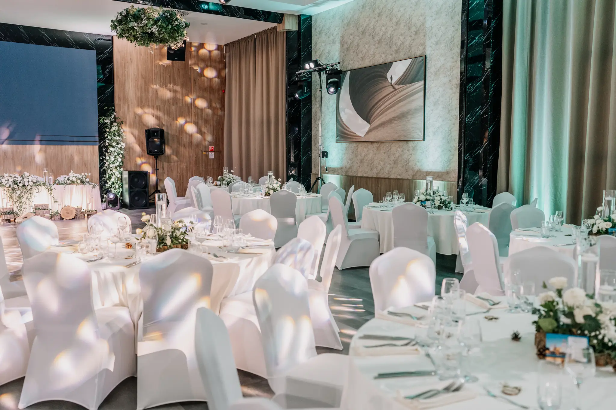 Идеалното място за вашата мечтана сватба! Нашата зала предлага елегантна и изискана обстановка, която ще направи вашия специален ден незабравим. Зала Santé съчетава лукс и комфорт, предоставяйки всичко необходимо за перфектното празненство. Ние се грижим за всеки детайл, за да направим вашия ден специален. Зала Санте е най-голямата ни мултифункционална зала, с обща квадратура от 336 кв.м, дължина 28 метра и ширина 12 метра. Тя разполага с голям LED екран тип p4, професионално озвучение и сценично осветление.